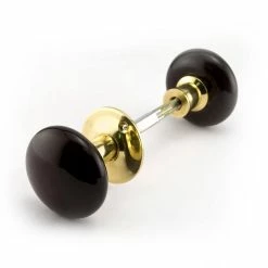 Signature Hardware Horizontal Iron Rim Lock Set with Porcelain Knobs Left Hand in Black Powder Coat