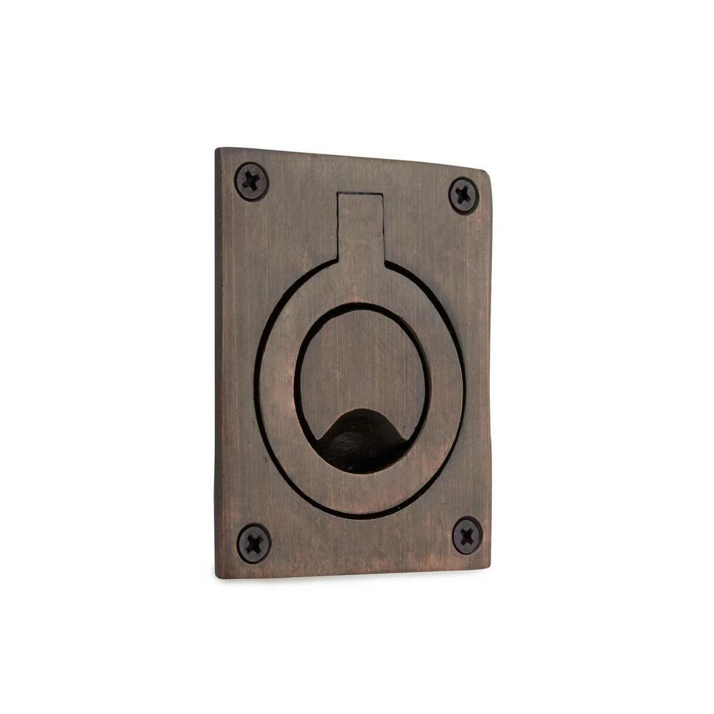 Signature Hardware 2-1/2 x 2 in. Brass Small Rectangular Recessed Ring Flush Pull in Antique Brass