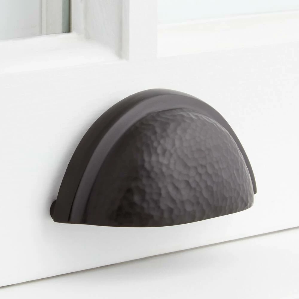 Signature Hardware 3-1/4 in. Hammered Bronze Cup Pull in Aged Bronze