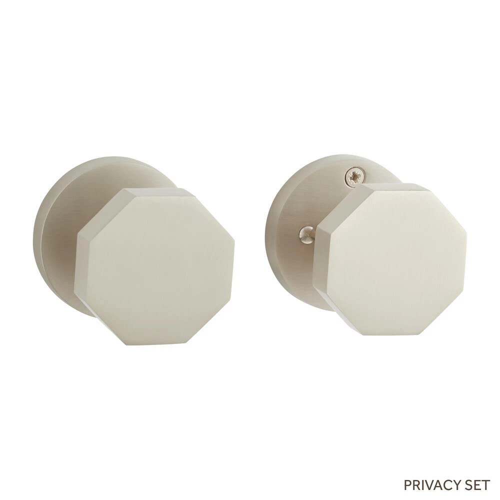 Signature Hardware Ambrus Solid Brass Privacy Interior Door Set Octagonal Knob in Brushed Nickel