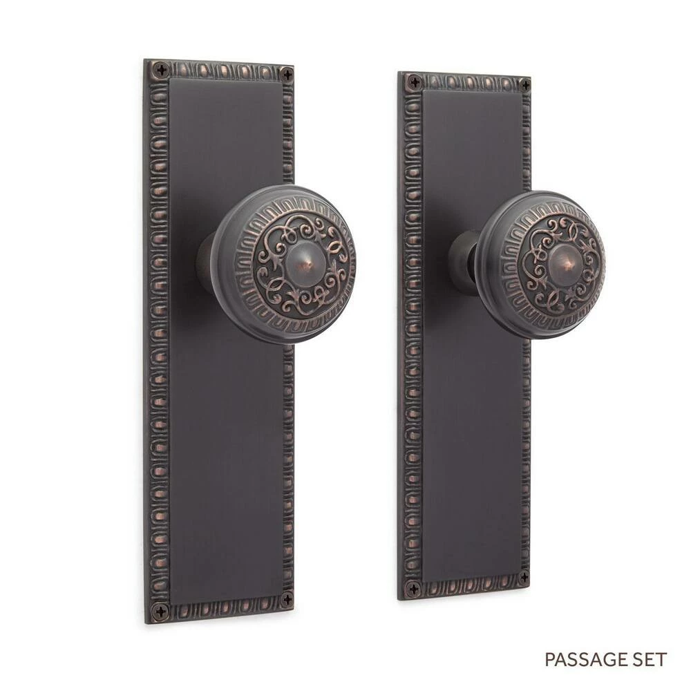 Signature Hardware Bachelet Brass Round Passage Plate and Knob Set in Oil Rubbed Bronze