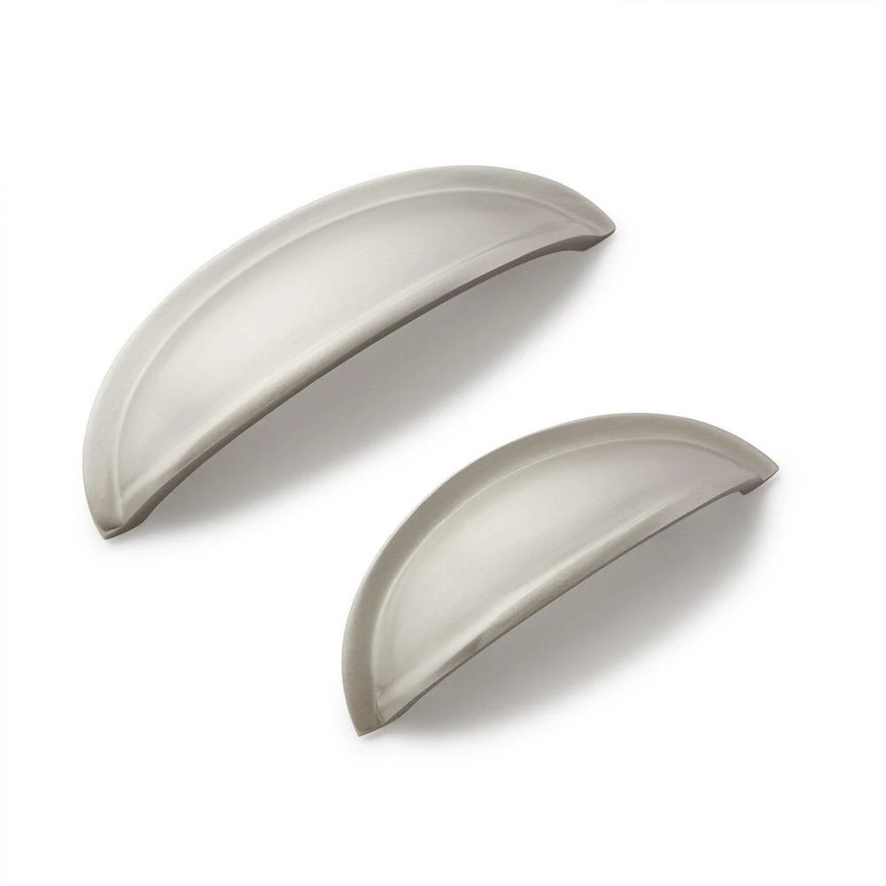 Signature Hardware Barrus 1-1/4 x 3-3/4 in. Brass Cup Pull in Brushed Nickel