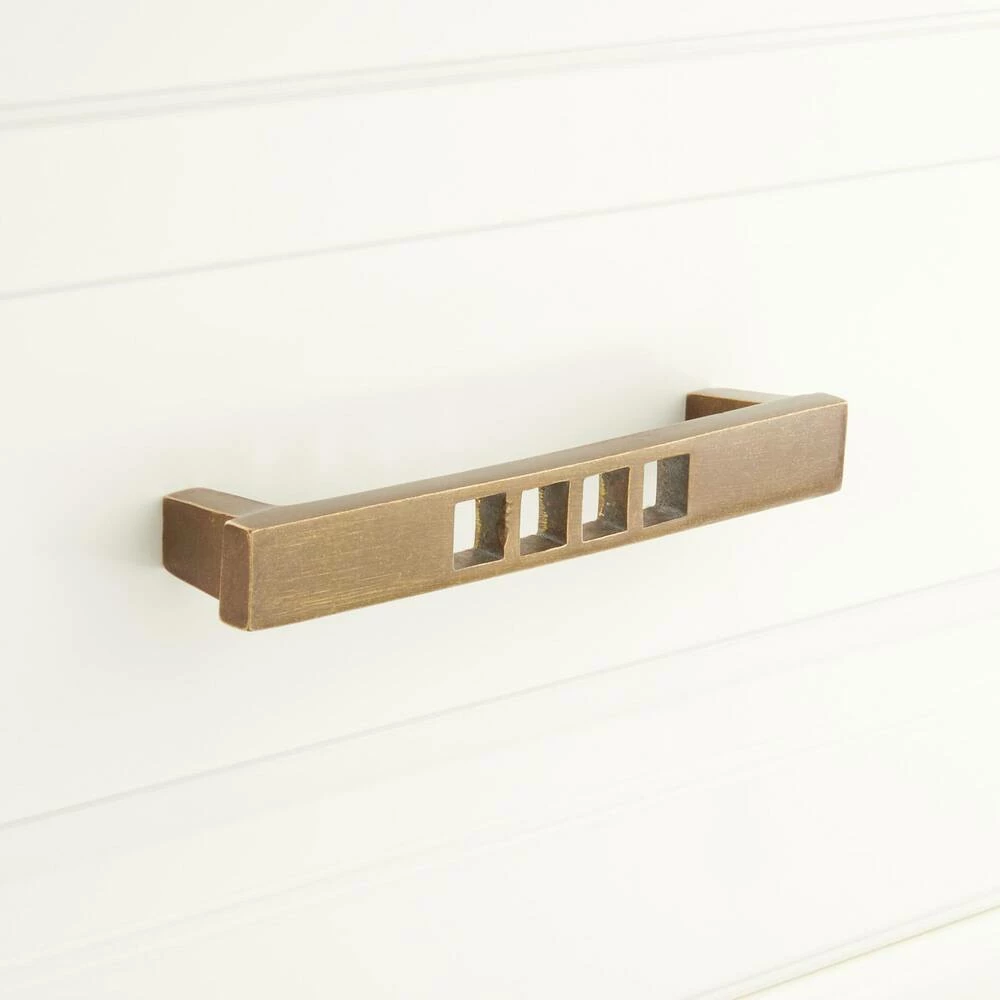 Signature Hardware Evinger 20 in. Rectangular Knurled Appliance Pull in Antique Brass