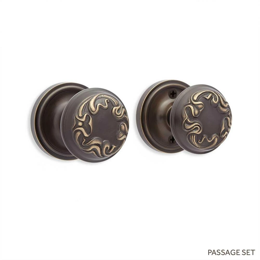 Signature Hardware Coline Brass Round Passage Plate and Knob Set in Antique Brass