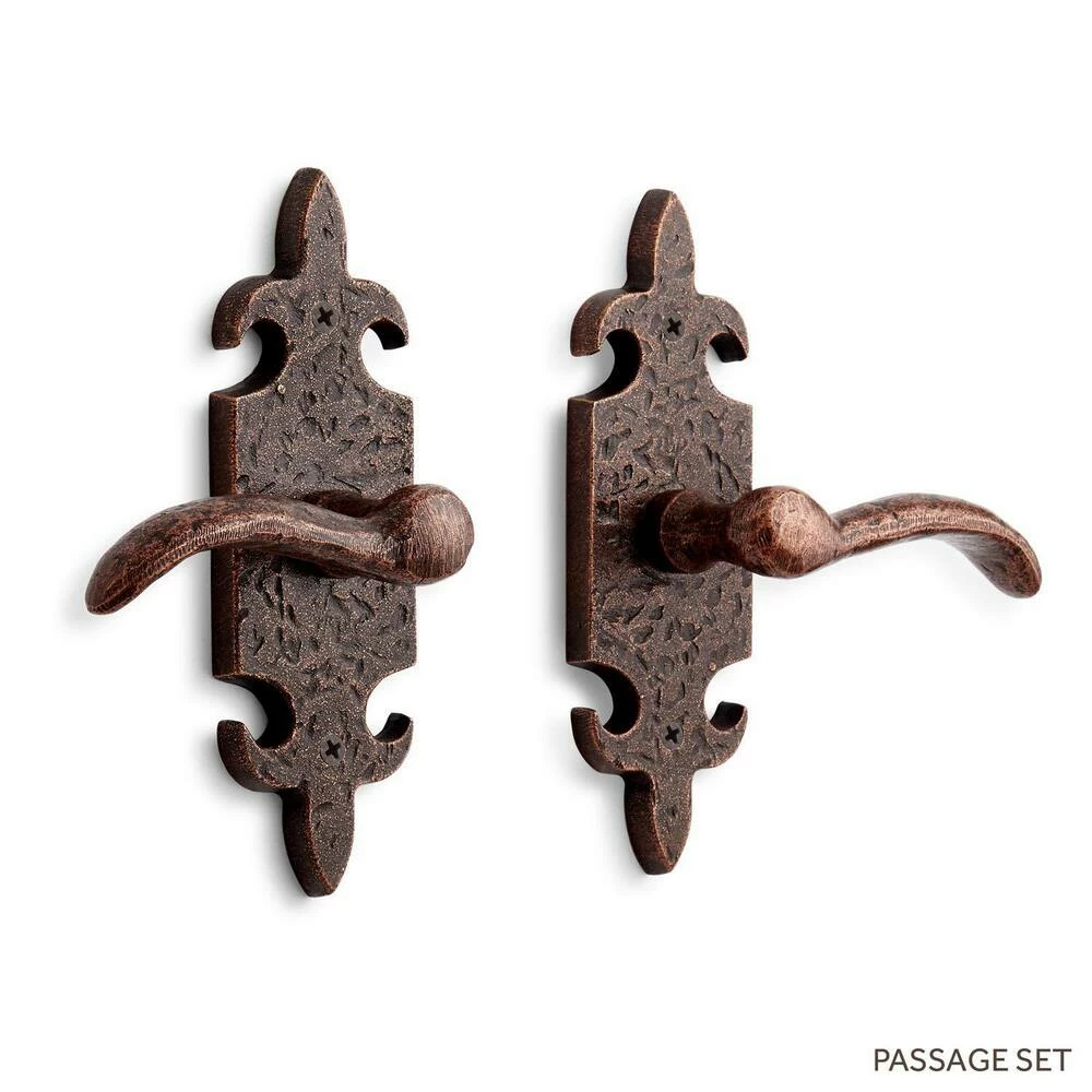 Signature Hardware Cousteau 2-3/4 in. Lever Passage Interior Door Set Left Hand Lever Set in Antique Brass