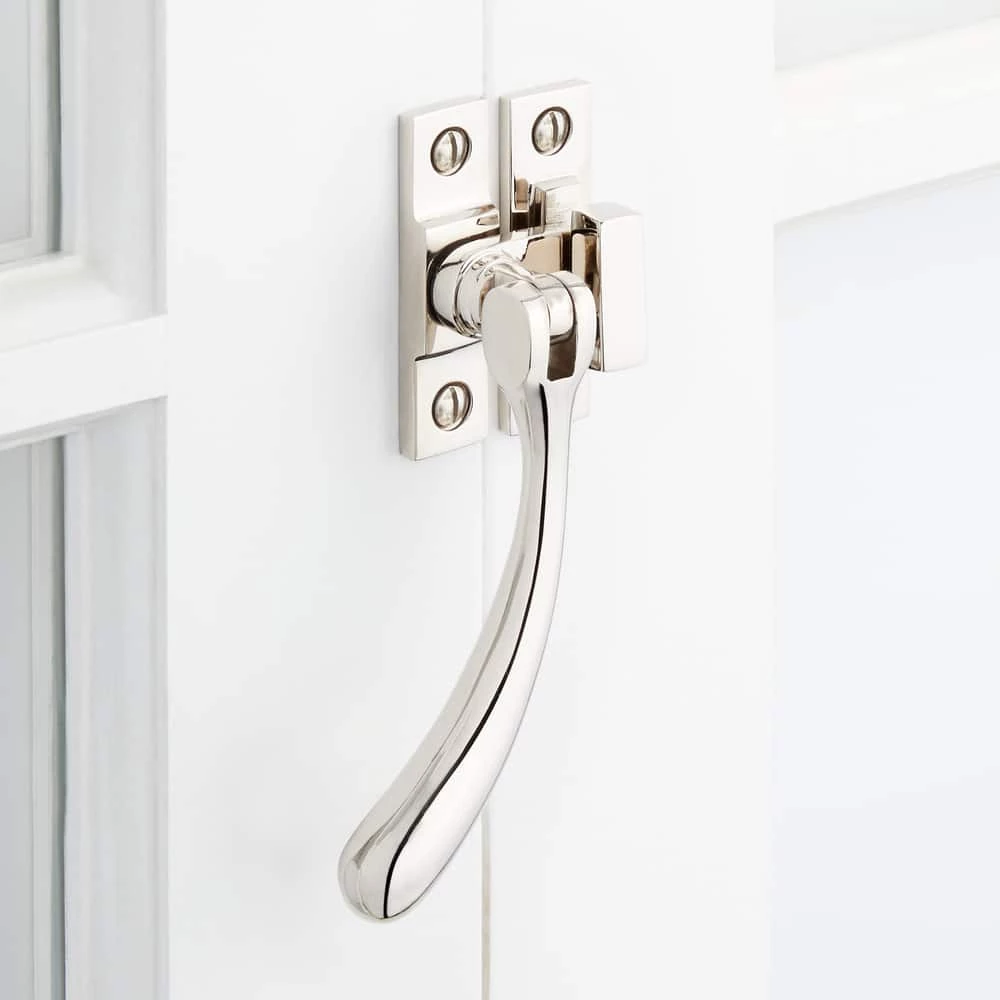 Signature Hardware Curved Brass Casement Window Latch in Polished Nickel