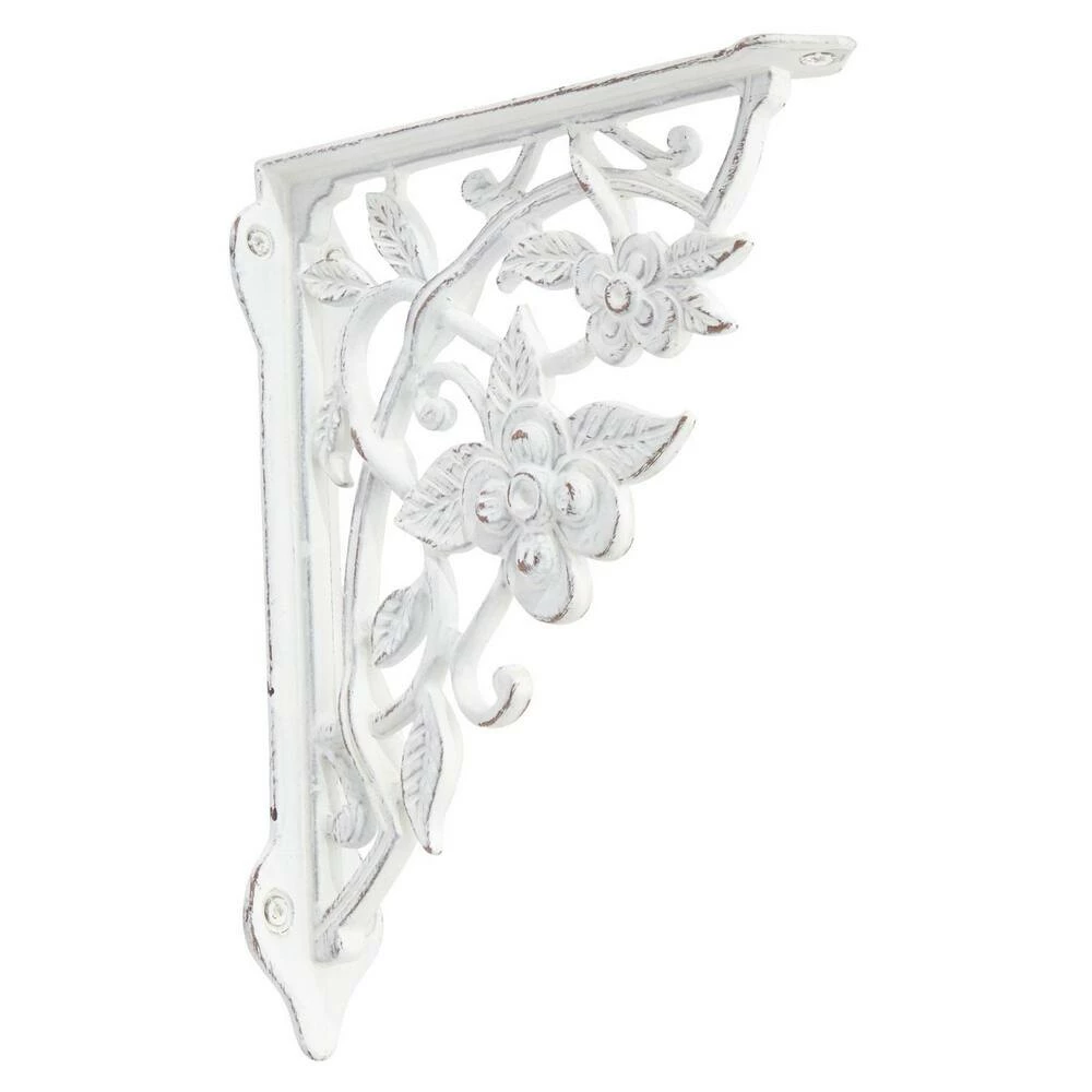 Signature Hardware Floral 8-3/4 in. Iron Shelf Bracket in Distressed White