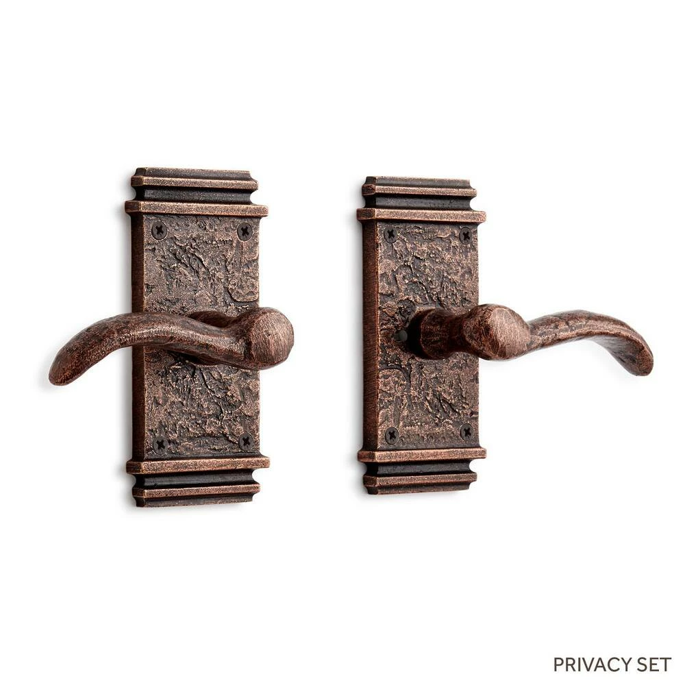 Signature Hardware Griggs 2-3/4 in. Lever Privacy Interior Door Set Left Hand Lever Set in Antique Brass