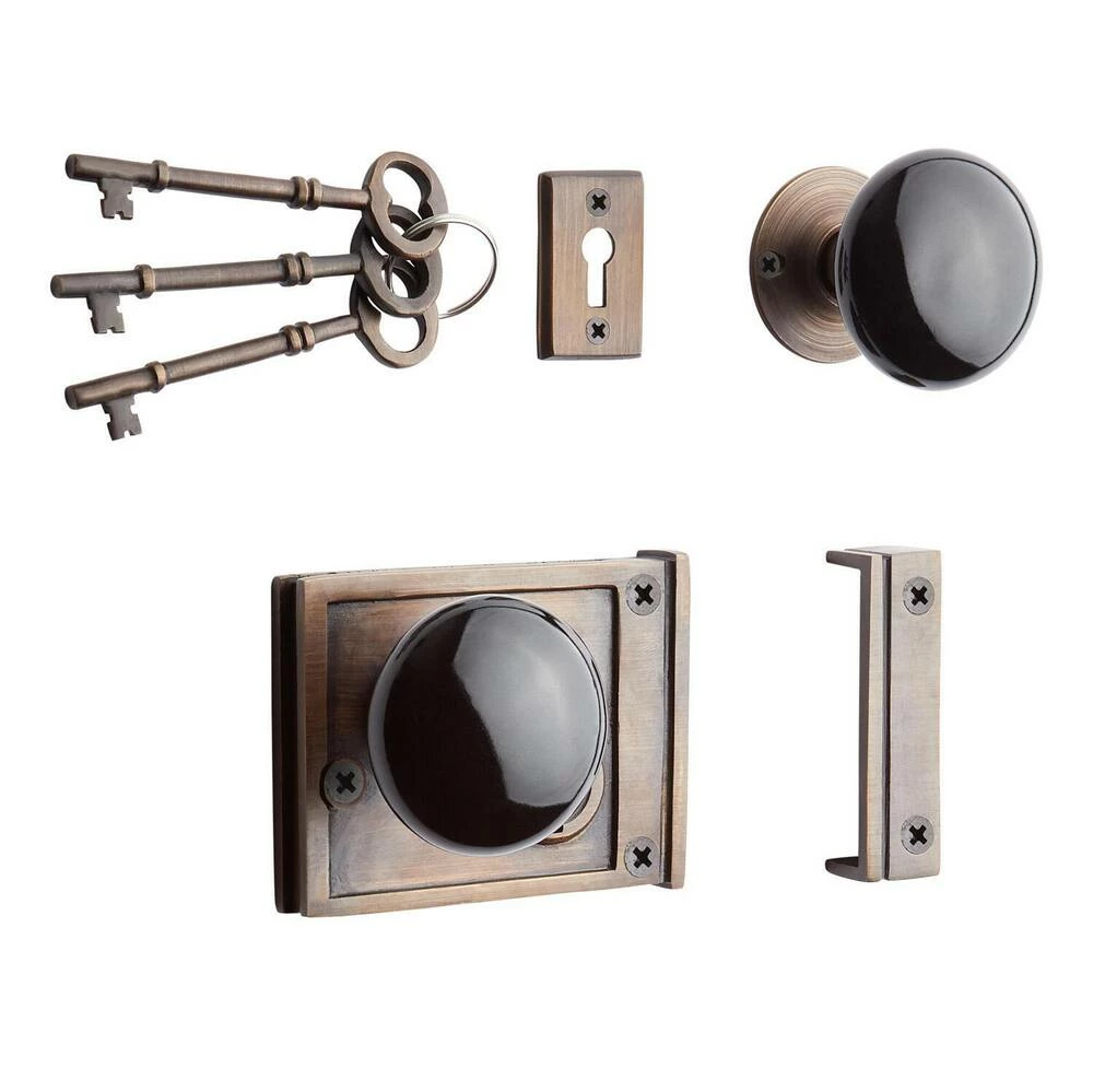 Be the first to review “Signature Hardware Horizontal Brass Rim Lock Set with Black Porcelain Knobs Left Hand in Antique Brass” Cancel reply