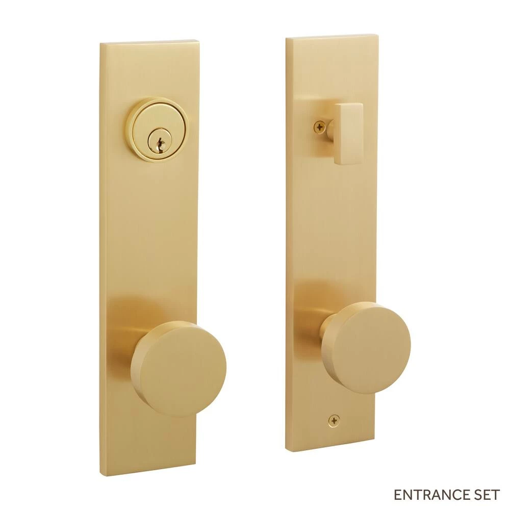 Signature Hardware Moceri Solid Brass Entrance Door Set Round Knob in Satin Brass