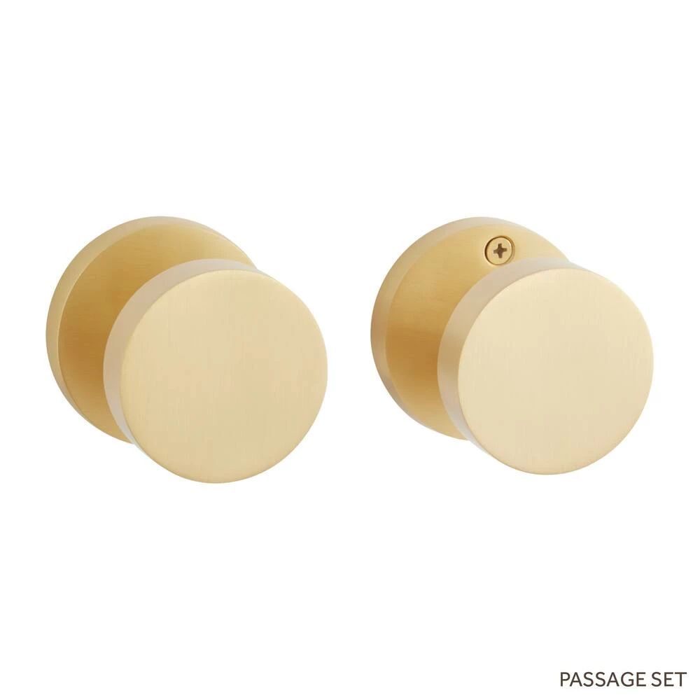 Signature Hardware Moceri Solid Brass Passage Interior Door Set Round Knob in Satin Brass