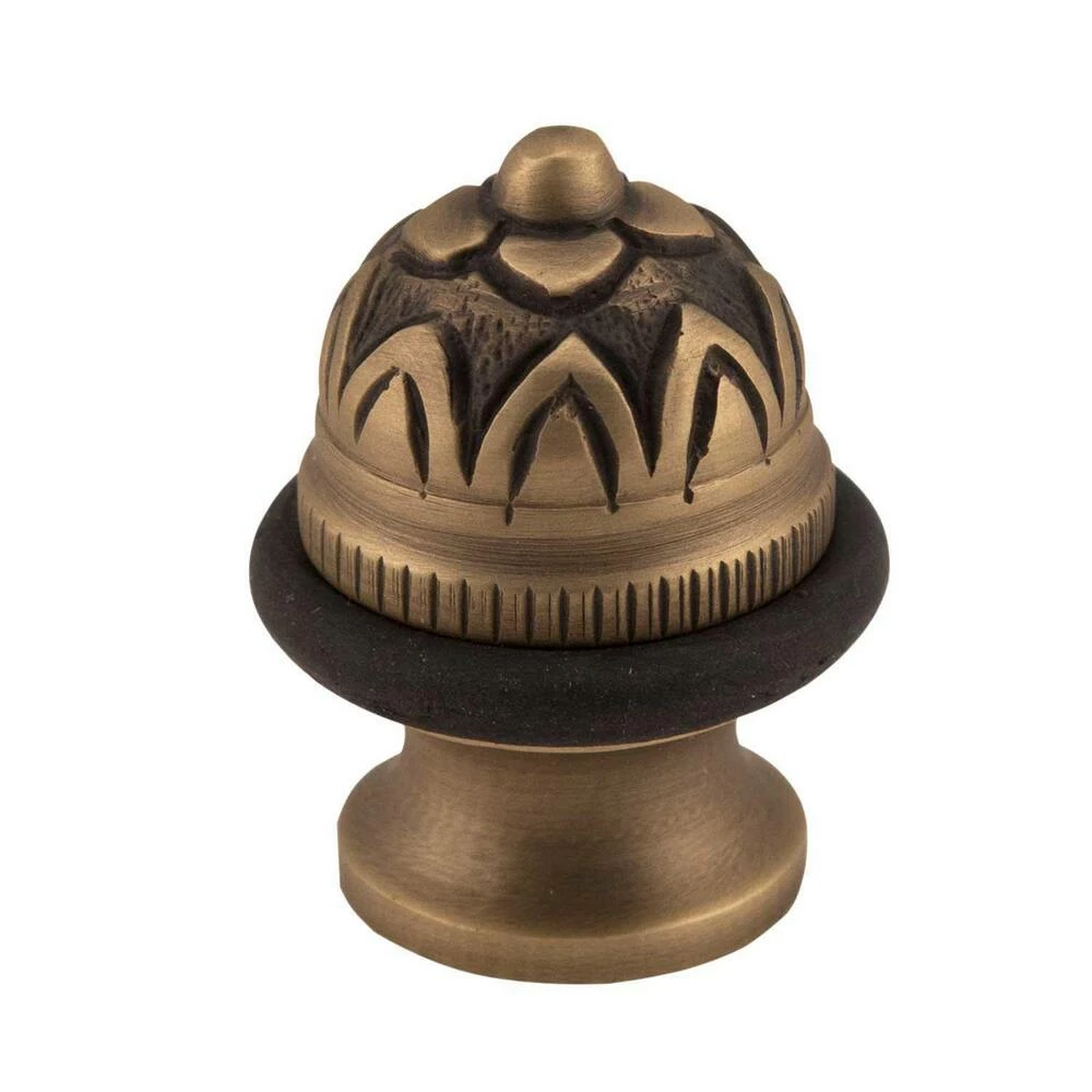 Signature Hardware Ornate 2 in. Brass Floor Door Stop in Antique Brass