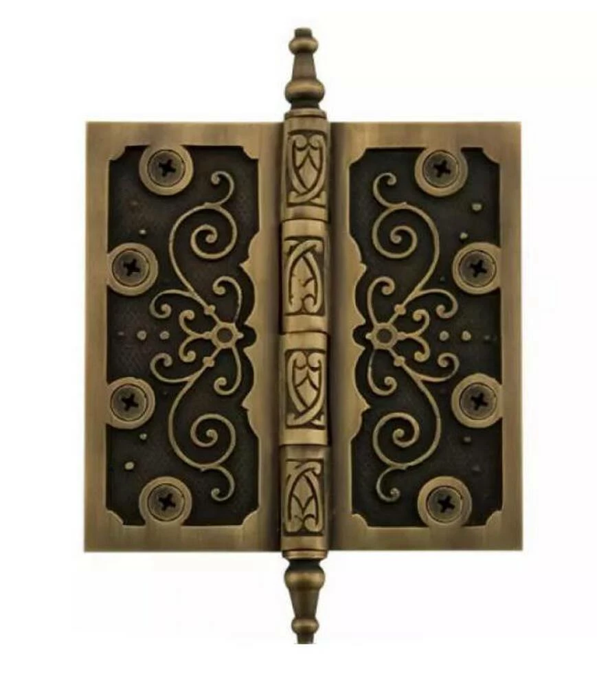 Signature Hardware Ornate 6-1/2 in. Residential Door Hinge in Antique Brass