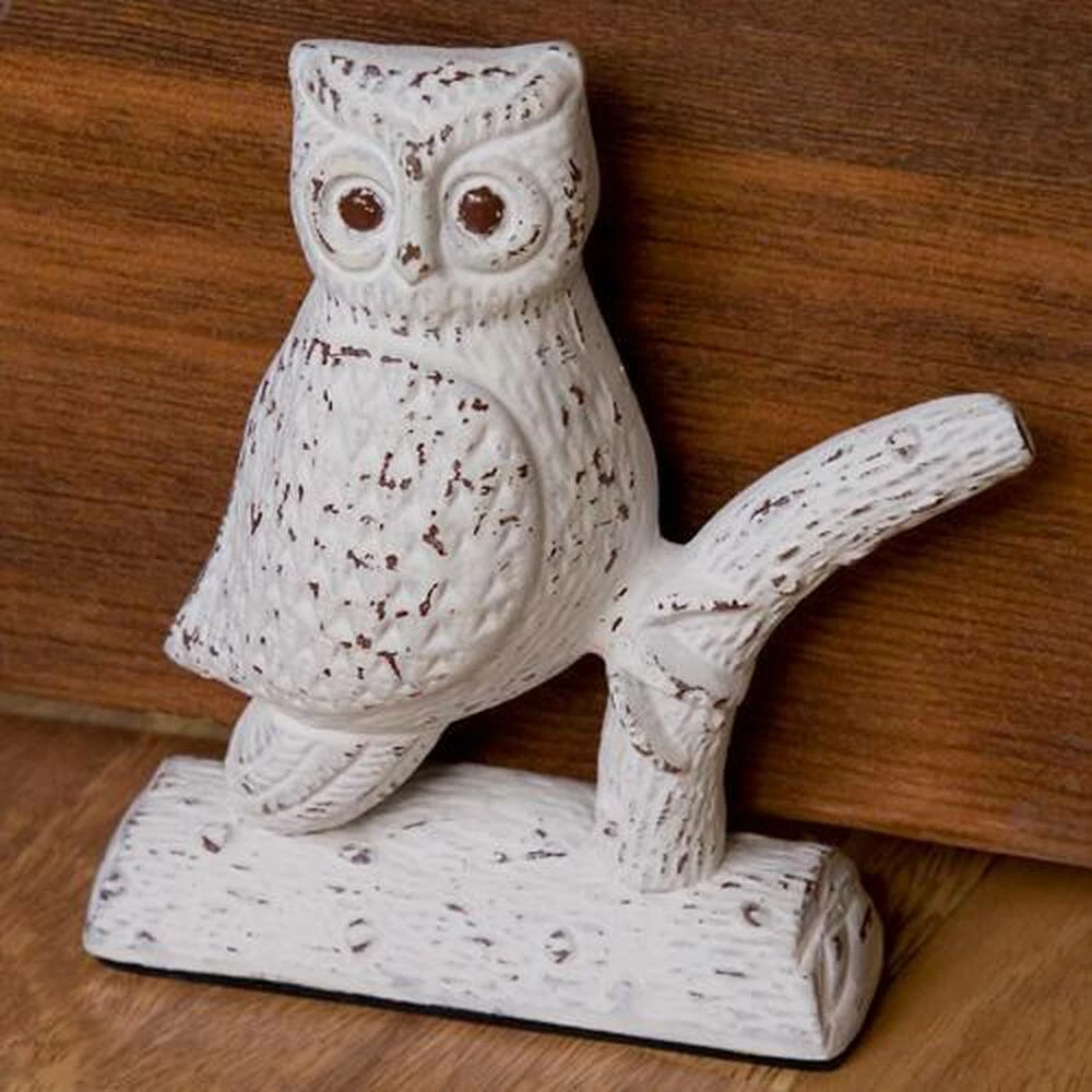 Signature Hardware Owl 6-1/2 in. Cast Iron Wedge Door Stop in Distressed White