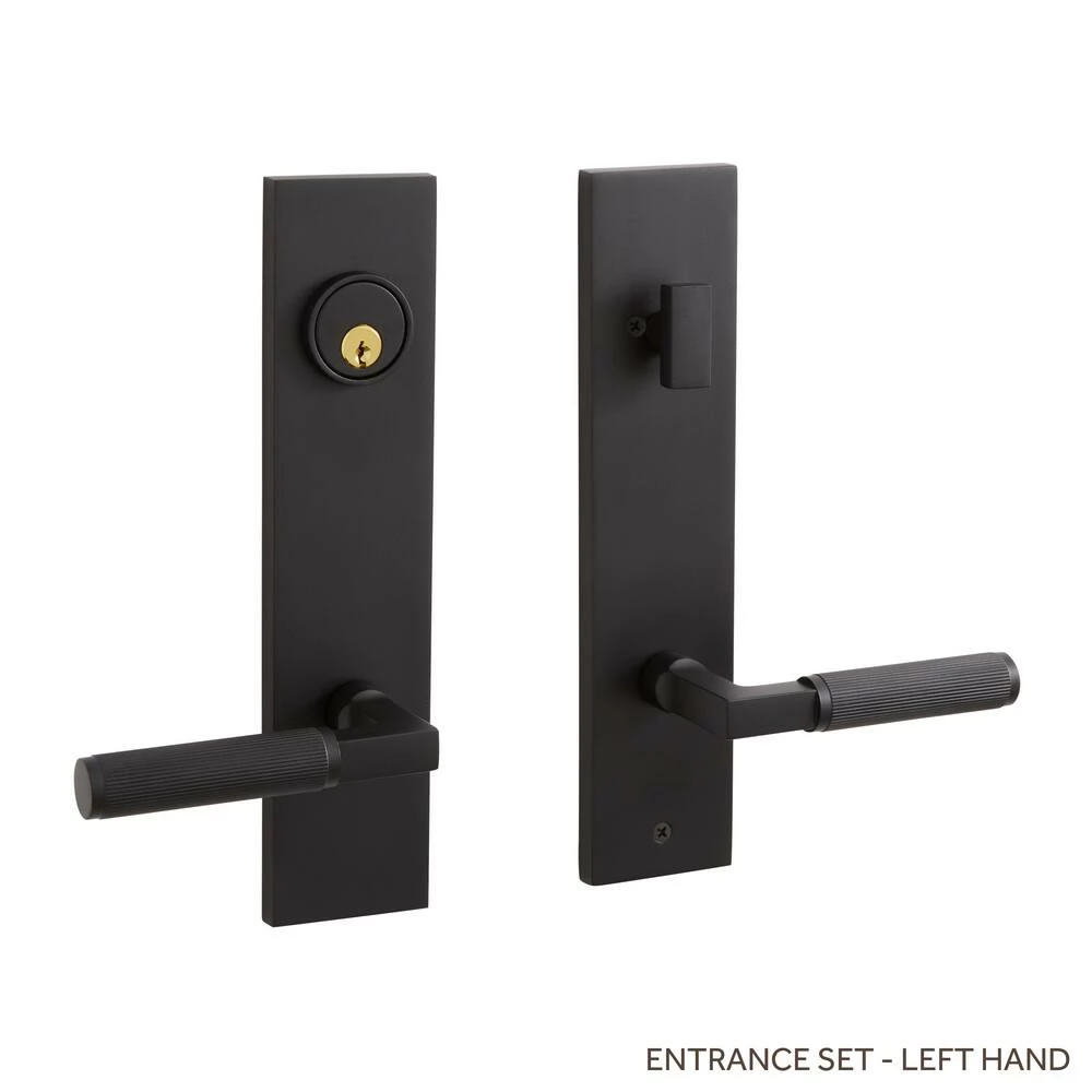 Signature Hardware Satcher Brass Handle Entrance Door Set Lever in Satin Black