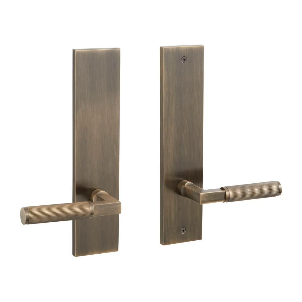 Signature Hardware Satcher Brass Handle Left Hand Dummy Entrance Door Set Lever in Antique Brass