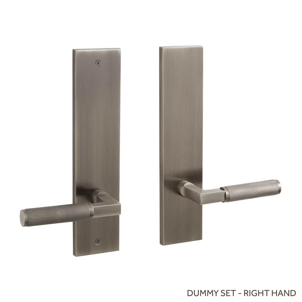 Signature Hardware Satcher Brass Handle Right Hand Dummy Entrance Door Set Lever in Antique Nickel