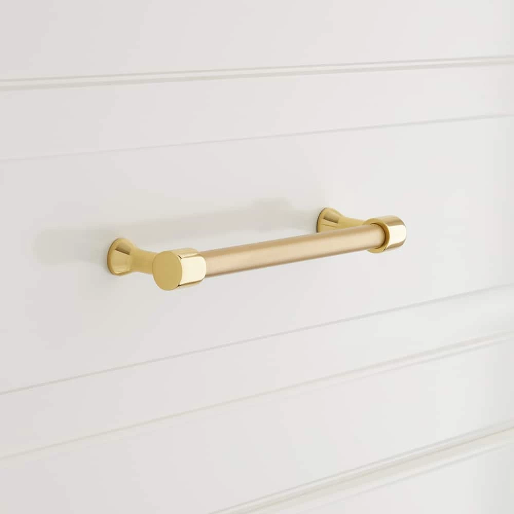 Signature Hardware Strasbourg 4-3/8 in. Solid Brass Cabinet Pull in Polished Brass with Satin Brass