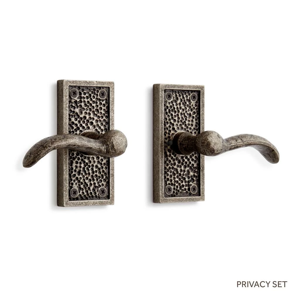 Signature Hardware Traeger Solid Bronze Privacy Door Set with Dual Lever Handle in Antique Pewter