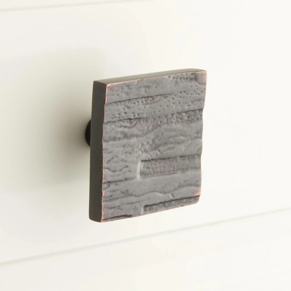 Signature Hardware Tree Bark 1-7/8 in. Brass Square Cabinet Knob in Dark Bronze