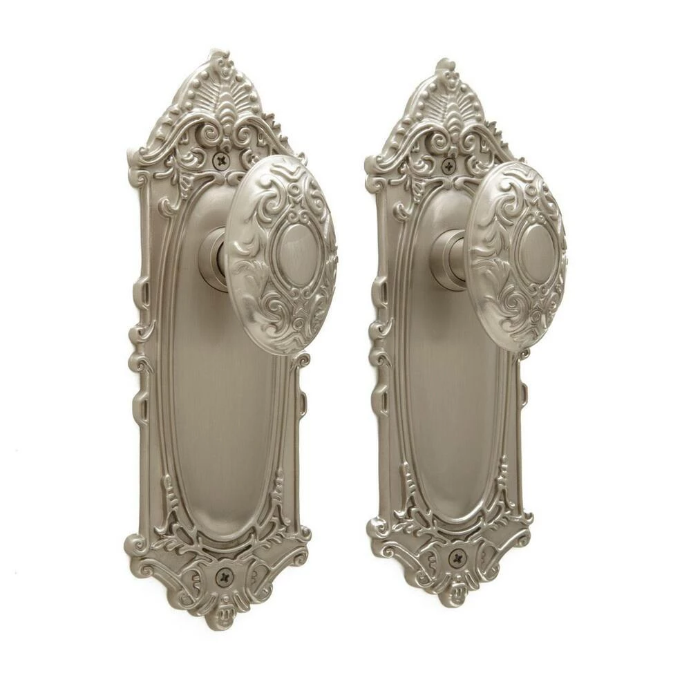 Signature Hardware Victorian Brass Passage Knob and Plate Set in Brushed Nickel